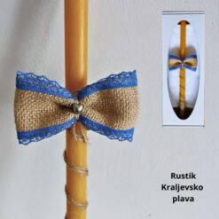 Sveća za krštenje sa jutom – Rustik tri nijanse plave